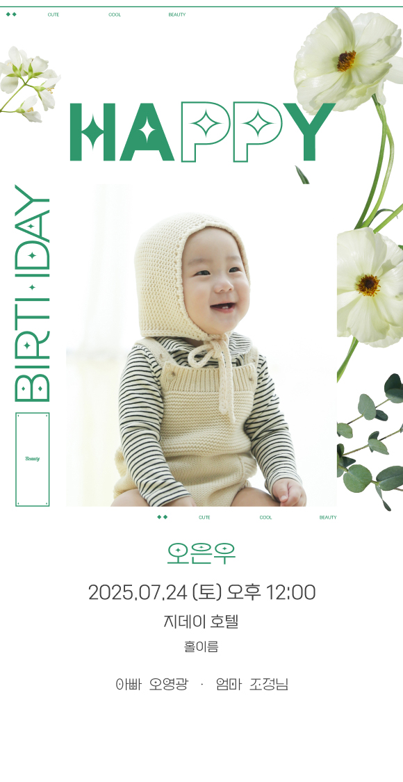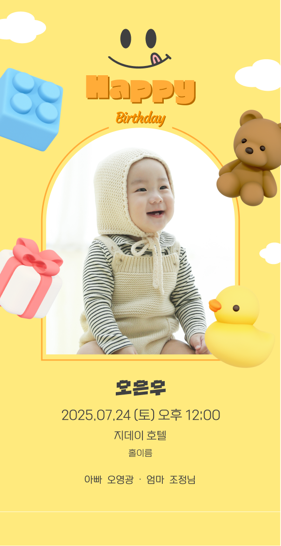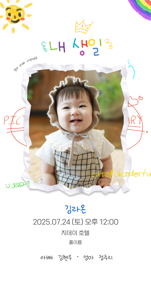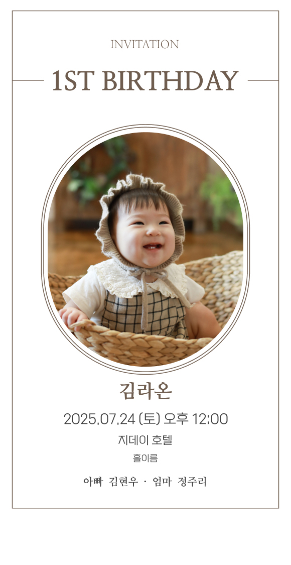 자연스럽게 담아낼 수 있어 돌잔치 초대장으로 자주 선택됩니다.35,000 won