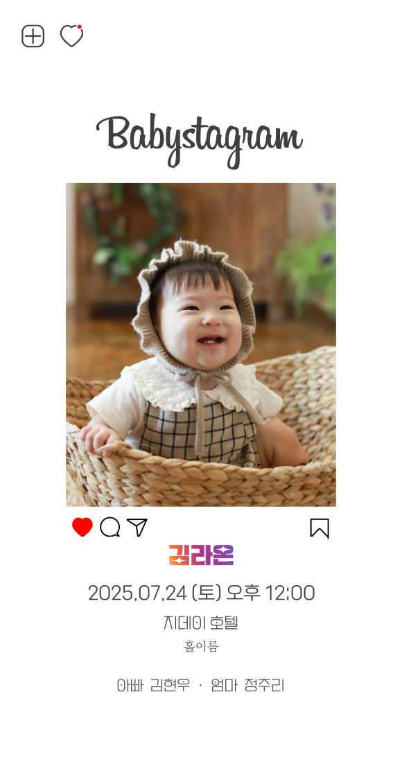 베이비스타그램인스타그램 피드를 연상시키는 트렌디한 레이아웃이 특징으로,