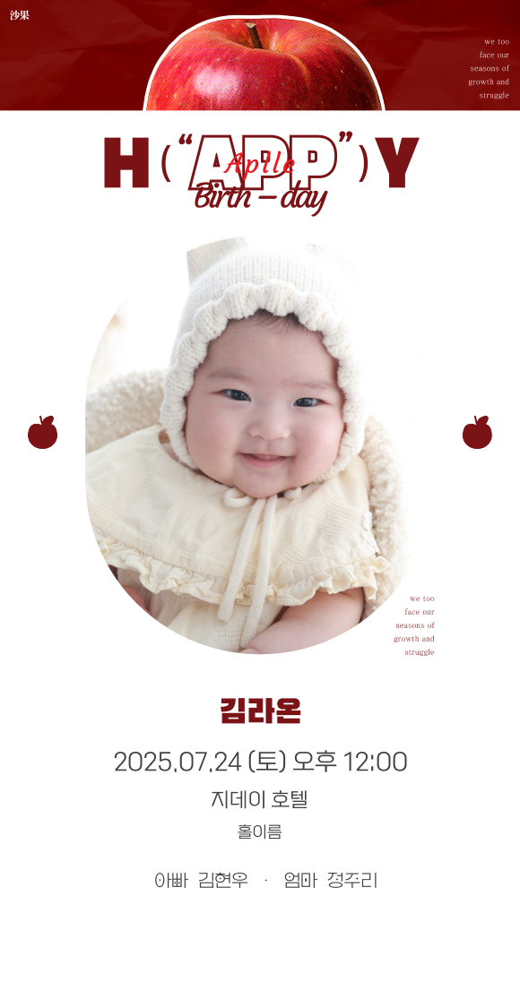 애플붉은 사과와 화사한 포인트가 돋보이는 독특한 컨셉의 초대장입니다.